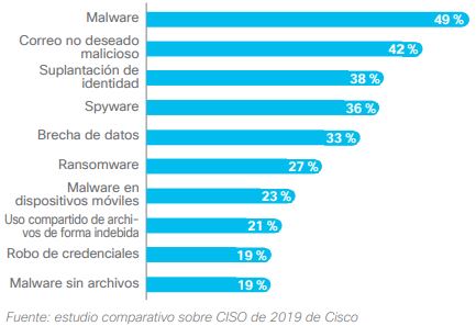 Un estudio comparativo de Capacidades de Seguridad de Cisco 2018 reveló que el 54% de todos los ataques cibernéticos causan daños financieros por más de 500,000 dólares, que incluyen, entre otros, la pérdida de ingresos, de clientes y de oportunidades, además de incrementar los gastos.